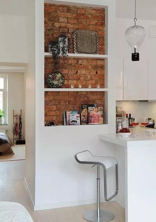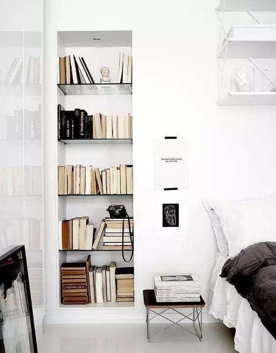 與其花錢買個(gè)書(shū)架不如做成這種嵌入式的書(shū)架。在墻面挖個(gè)洞放上一些層板看起來(lái)簡(jiǎn)單但卻很實(shí)用,而且還能讓居室顯得更敞亮一些。