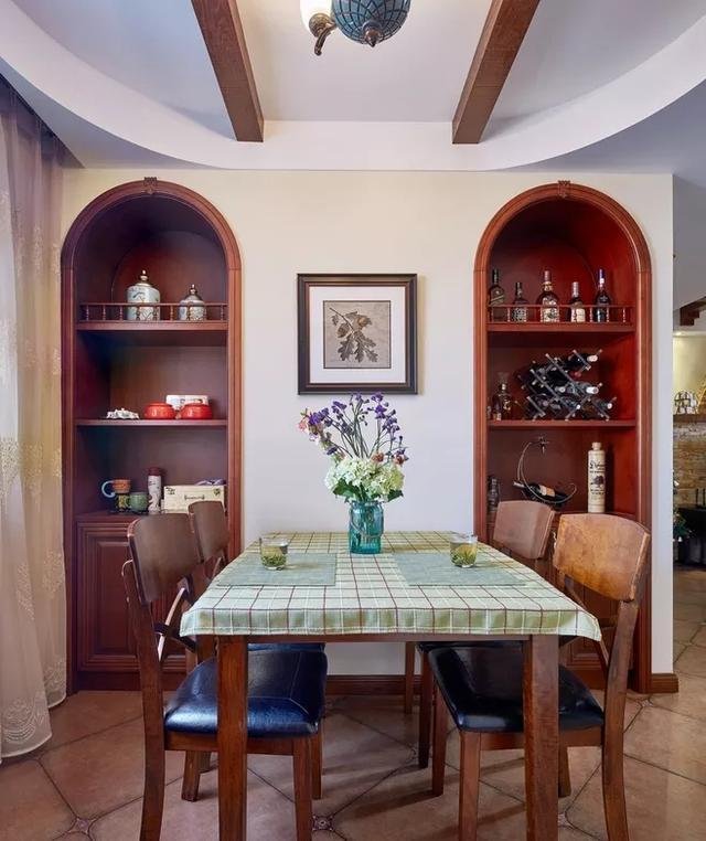 用餐時(shí)我們難免會(huì)用到一些調(diào)味料或是飲品,與其跑到廚房拿取不如在餐桌周圍設(shè)計(jì)一個(gè)收納空間。比起買餐邊柜這種壁龕設(shè)計(jì)要更實(shí)用一些,它不僅可以根據(jù)家里的風(fēng)格做成各種造型,而且價(jià)格比定制柜還要便宜。