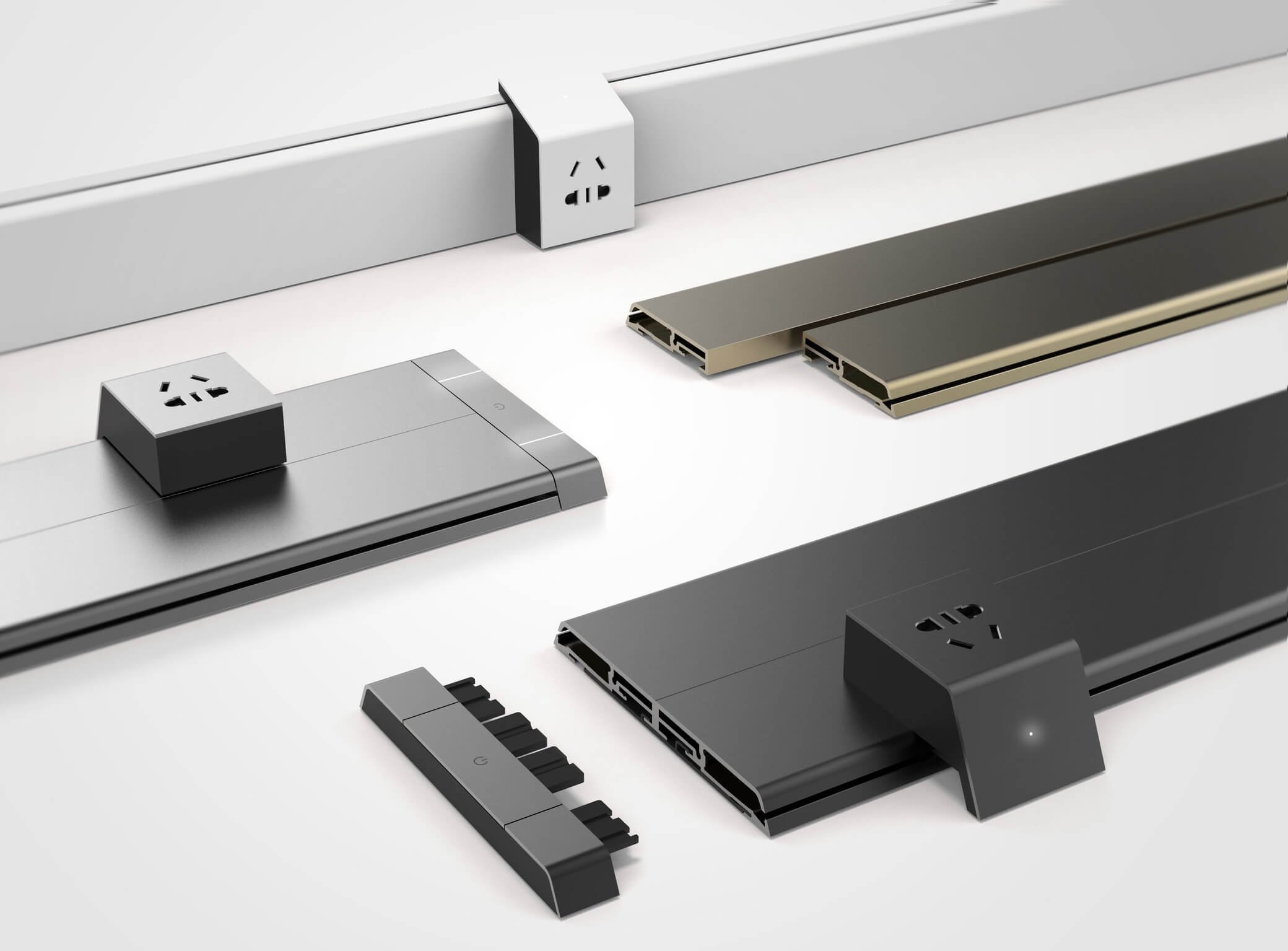 軌道插座是由電力軌道 + 可移動插座組成。不需要開鑿埋盒,只需要安裝嵌入式軌道就行了,還能根據(jù)需要定制插孔數(shù)量和軌道長度。插座沿著軌道靈活移動,跟墻面一體化,不僅設(shè)計感強,比傳統(tǒng)插座優(yōu)點要多得多。
