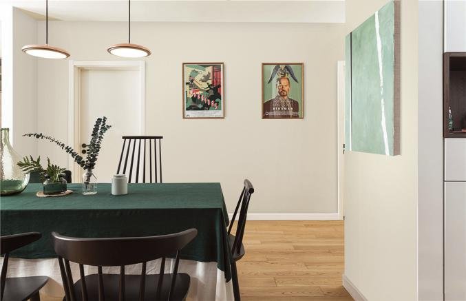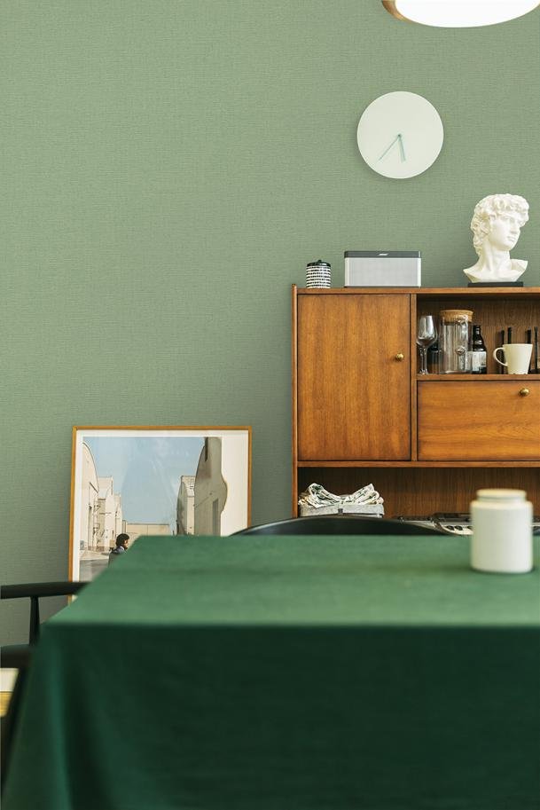 譬如,鋪貼牛油果綠色墻布,大面積使用從而打造出平和自然,舒緩雅致的家居氛圍。搭配幽深的墨爾本綠餐布,由深到淺的漸變色階,清新治愈有極具質(zhì)感。放置純白裝飾品或原木家具,通暢明亮,瞬間提亮空間。