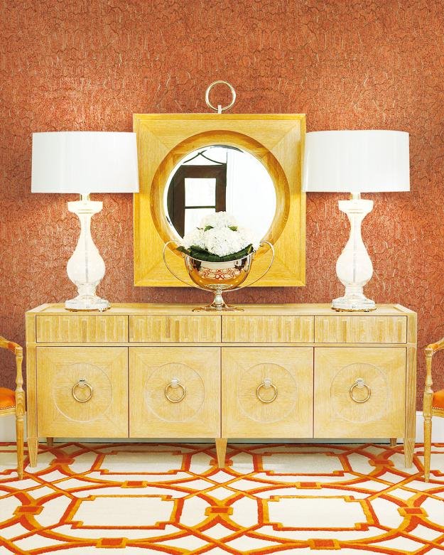 再者,在客廳挑選的愛(ài)馬仕橙系墻布,輕奢愛(ài)馬仕橙結(jié)合高定時(shí)裝中的華麗蕾絲刺繡,展現(xiàn)出精巧迷人的氣質(zhì),非常適合現(xiàn)代風(fēng)家居的選擇。除了選用白色或原木色、黃色等裝飾降低愛(ài)馬仕橙的鮮艷明度,而選擇大塊淡橙與白色混合的幾何地毯,時(shí)尚溢于言表,效果更佳。