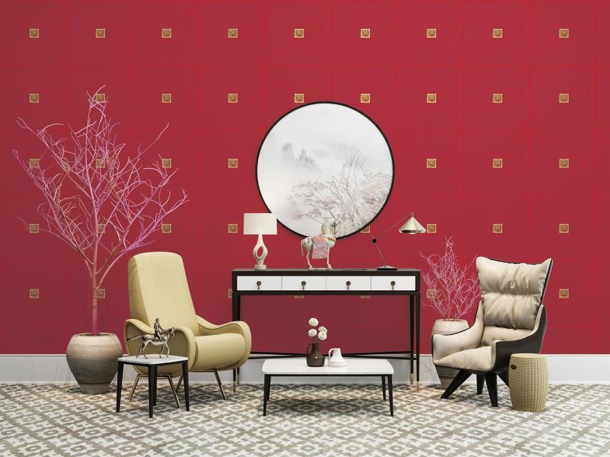 當(dāng)紅色被用作搭配色時(shí),顯得更加活潑,動(dòng)感。大自然壁高墻畫(huà)《現(xiàn)代1》中,深色系墻布藏著典雅的魅力,設(shè)計(jì)師以月球?yàn)閯?chuàng)意元素,暗色調(diào)的星辰景象,如漫天流星般傾瀉下來(lái),如夢(mèng)如幻。在家居的配搭上,選擇了一套橘紅色沙發(fā),一方面降低深色調(diào)下的壓抑感,一方面利用對(duì)比色來(lái)打造吸睛點(diǎn)。更適宜用在門(mén)廳、客廳、等本身就需要人處于興奮狀態(tài)的房間。
